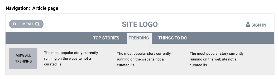 We needed to design a navigation strategy that gave our loyal audience the full set of topical links, while also engaging users who prefer to browse current or popular headlines to stay up-to-date.